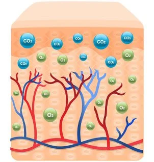 The absorption of CO2 leads to a deficiency of oxygen beneath the skin causing the body to supply more oxygen to the area.